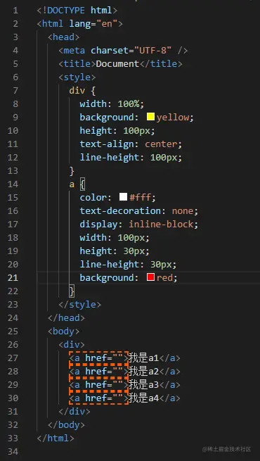 每个a之间都会有一个空隙,这个空隙是因为块级元素会换行,.HTML 中的换行符、空格符、制表符等合并为空白符.所以换行符会占据宽度,产生间隙