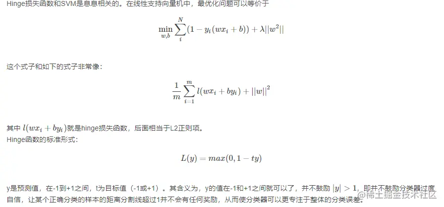 - 铰链损失(Hinge Loss):主要用于支持向量机(SVM) 中;
