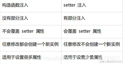 4、区分构造函数注入和setter注入。