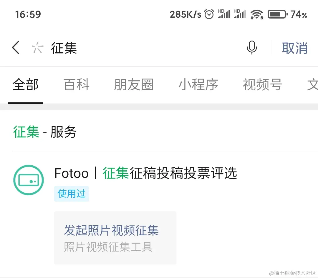 微信搜索【征集】,即可找到【fotoo征集一下】小程序;
