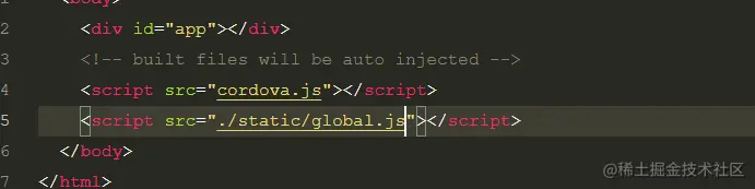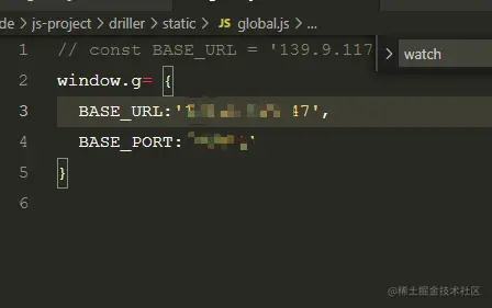 首先我们要在static文件下建立一个js文件,static文件夹下的文件打包成app的时候会完整的打包的对应的文件下面.写上一个初始的ip和端口 然后再index.html文件下面引入一下