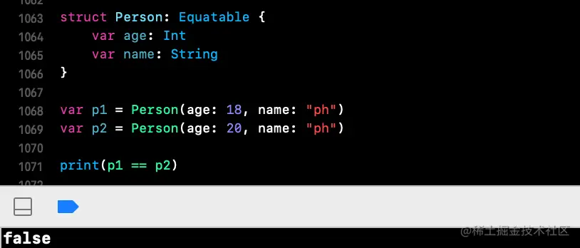- 结构体遵守Equatable