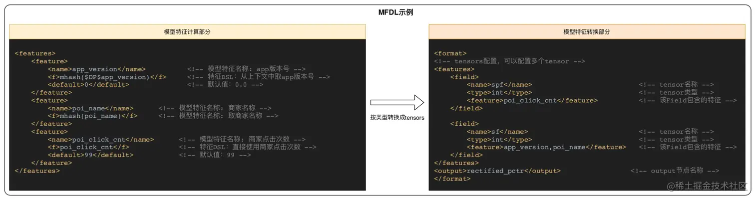 - 模型特征自描述MFDL:将特征计算流程配置化,提升特征使用的易用性。