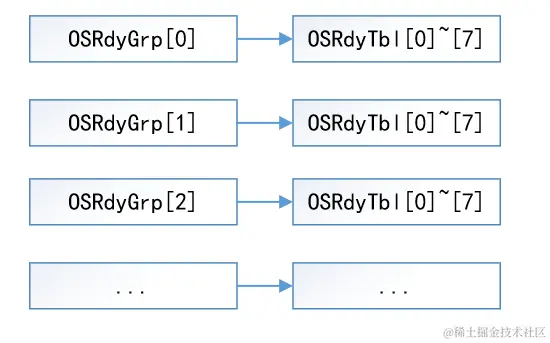 - 优先级表(OSUnMapTbl)和就绪表(OSRdyTbl)、就绪组(OSRdyGrp)的关系?如何计算优先级?