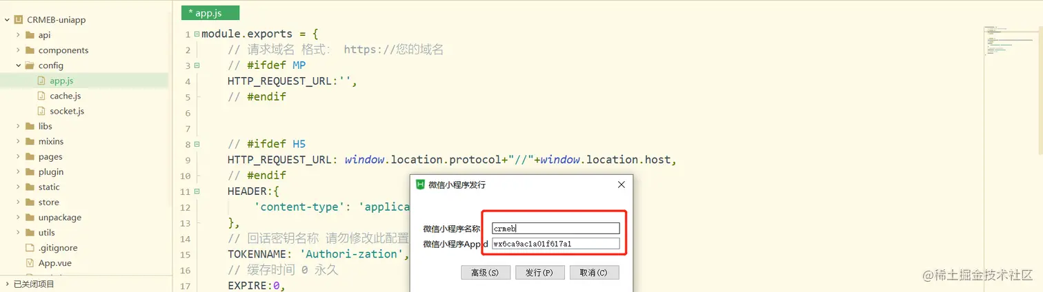 - 出现如下图所示,填写自己的小程序appid和小程序名称点击发布