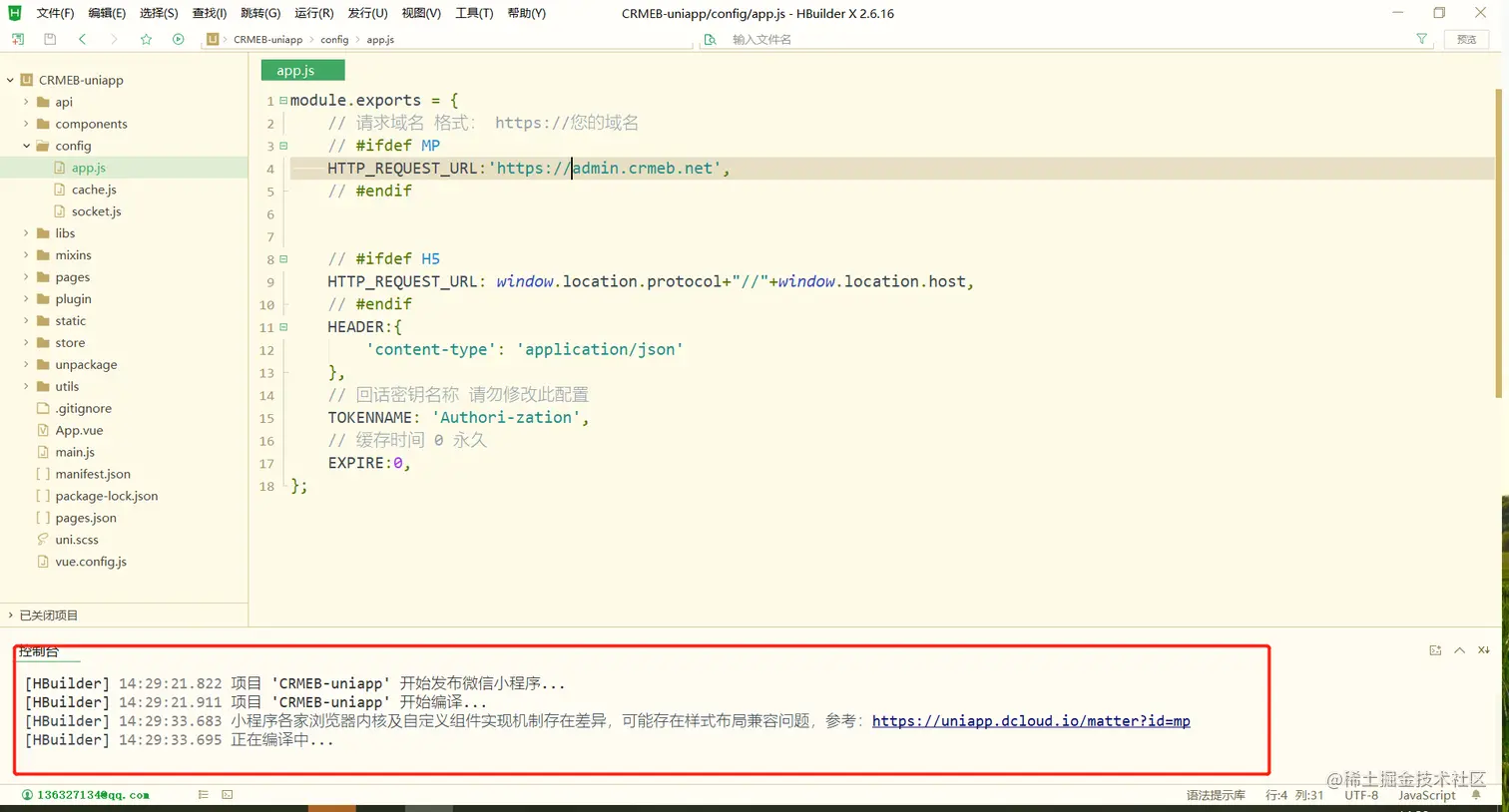 8.等待打包完成后会自动打开微信小程序开发工具
