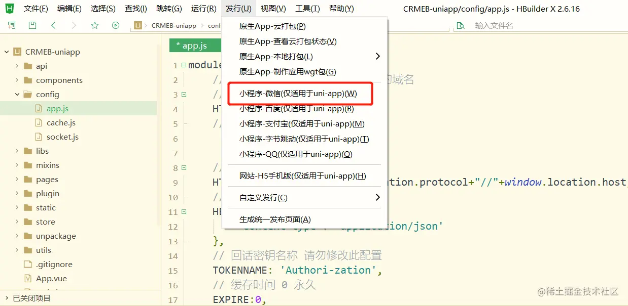 6. 点击上方发行按钮
