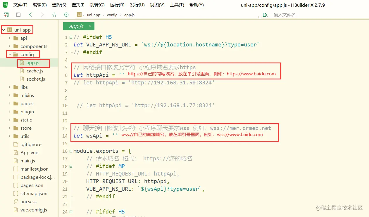 修改域名,找到如下图所示填写自己的域名格式为:https://域名 客服域名格式为:wss://域名
