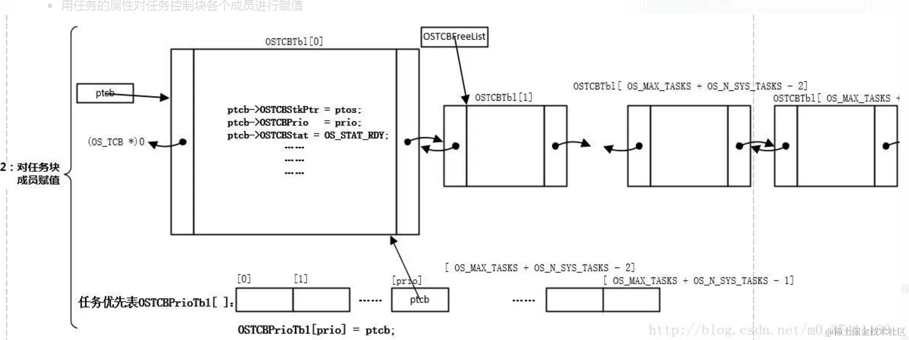 - 被创建任务从空闲任务控制链表(OSTCBFreeList)中获取一个任务控制块