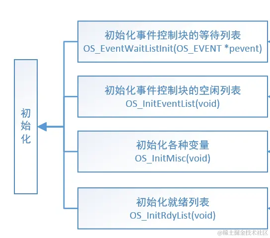 *描述:该功能被初始化函数 OSInit()调用,用来初始化事件控制块的空闲列表