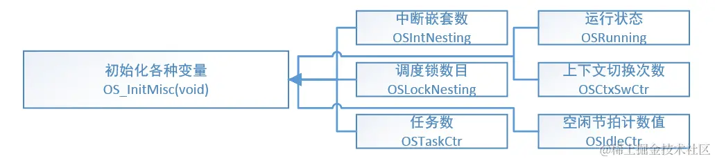 *描述:该功能被OSInit()调用,用来初始化各种变量