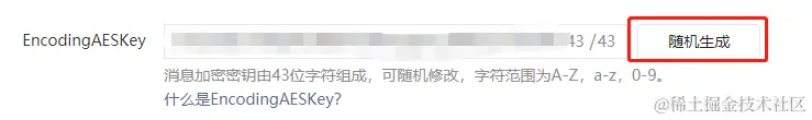 13.EncodingAESKey,点击“随机生成”,然后复制内容
