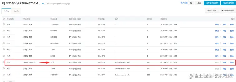 13.添加8个端口:80、21、8888、888、443、3306、20002/20100,授权对象:0.0.0.0/0