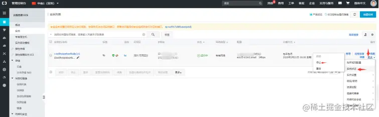 1.在阿里云控制台,云服务器ECS,实例,点击最右侧更多→实力状态→停止。