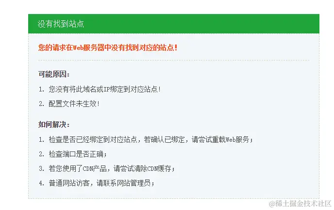 访问出现此提示,表示域名配置有问题。可以尝试刷新几遍,看是否配置未生效,或者在下一步设置中更改配置。