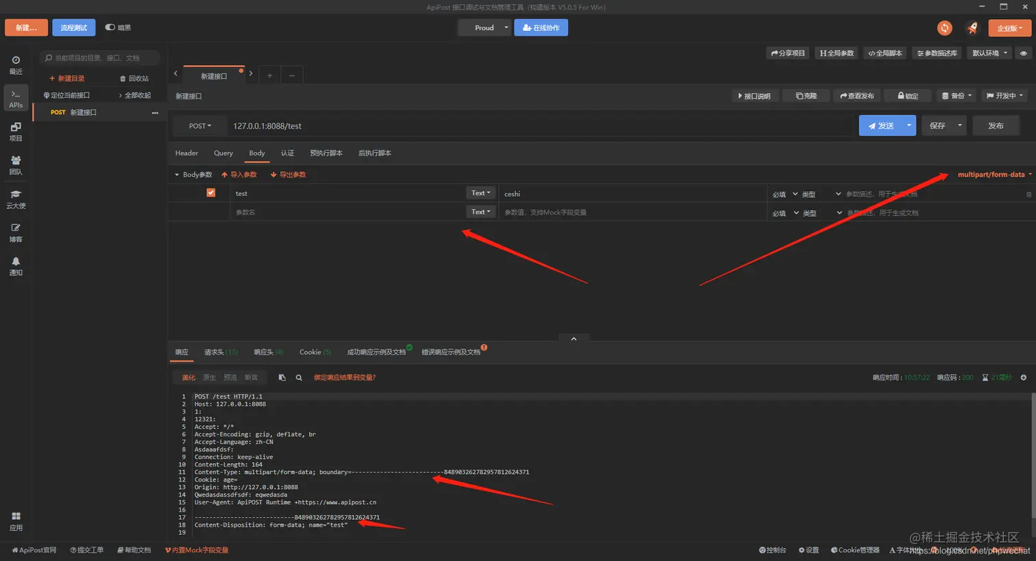 最后研究发现,apipost自定义content-type并携带参数进行发送的话,不支持body为form-data和x-www-form-urlencoded。使用body为json格式等其他格式的时候就可以自定义content-type并携带参数进行发送。