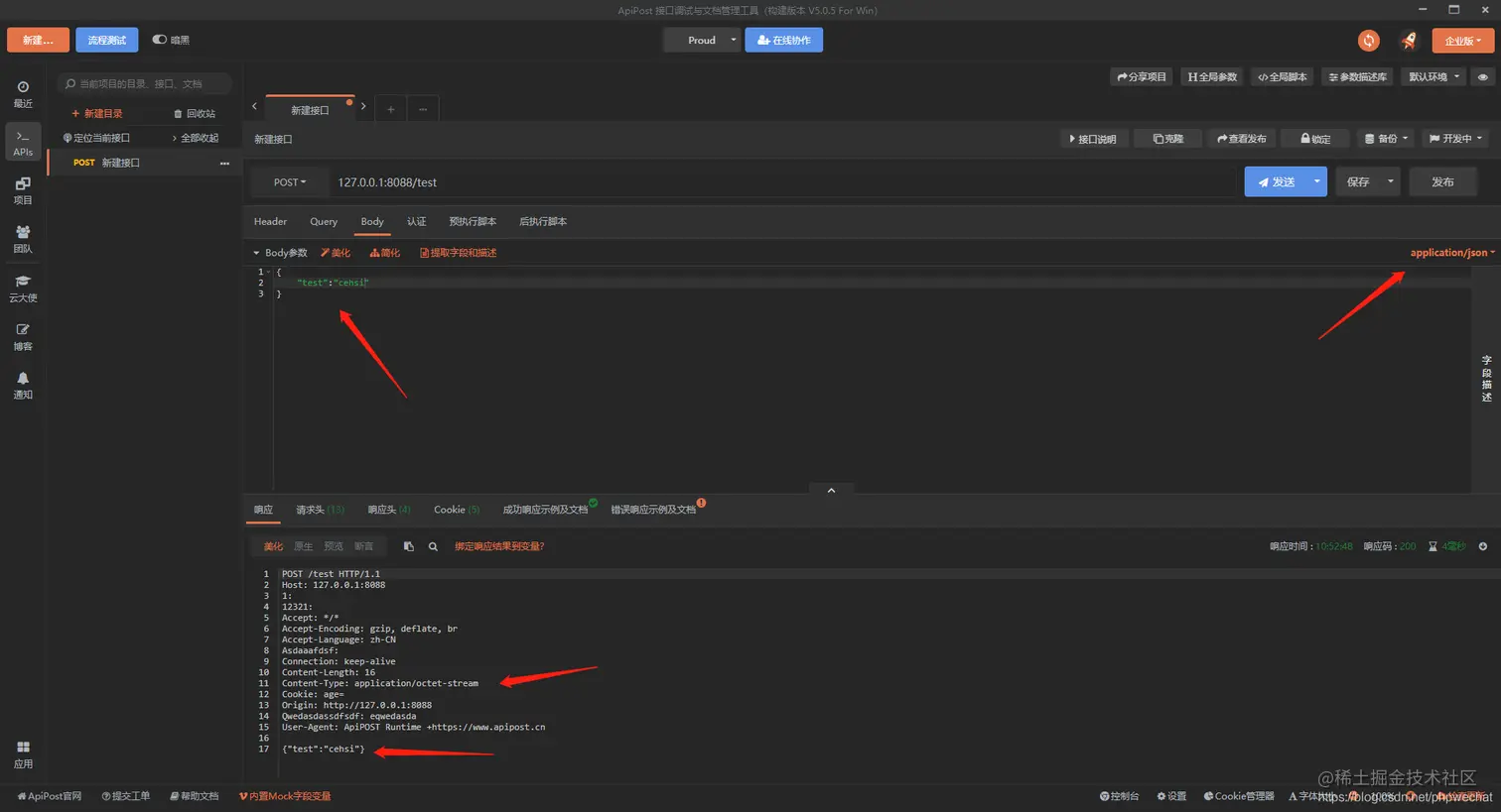 使用apipost进行接口测试的时候,有时候会用到一些自定义或者不常见的content-type格式,这个时候就要手动在header头部自定义content-type。