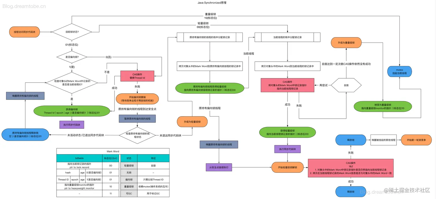也就是说偏向锁比较的是 线程id是否与当前线程一致; 轻量级锁比较的是,锁对象的指针是否指向自己;