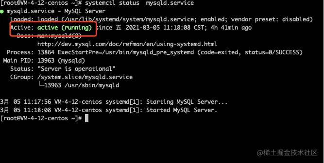 #2.如果active不是active则执行下面这条指令(启动MySQL服务)