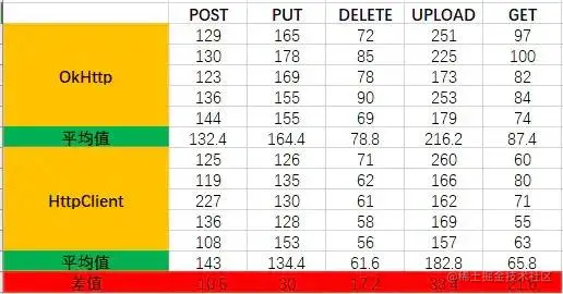 单例模式下,HttpClient 的响应速度要更快一些,单位为毫秒,性能差异相差不大 非单例模式下,OkHttp 的性能更好,HttpClient 创建连接比较耗时,因为多数情况下这些资源都会写成单例模式,因此图一的测试结果更具有参考价值