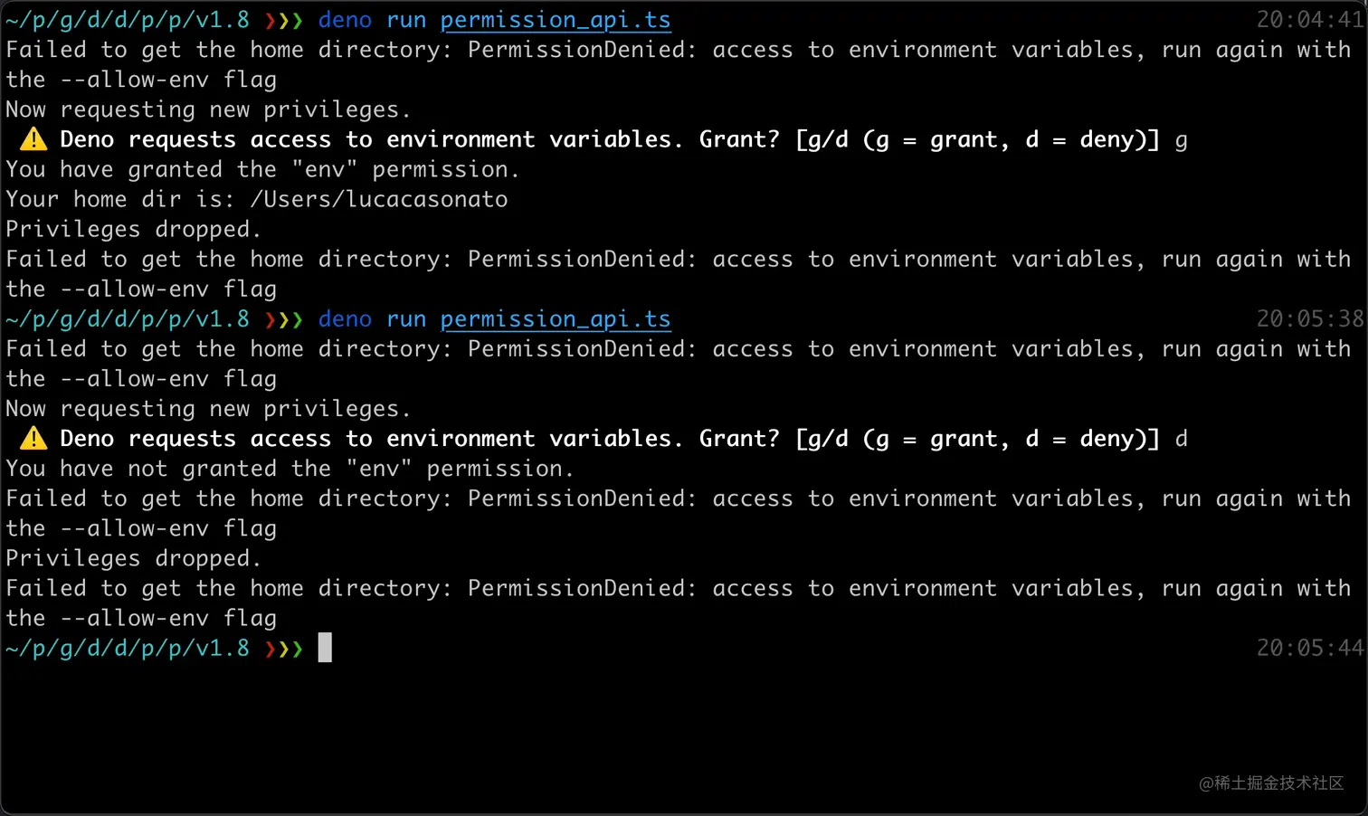 你可以自己运行此脚本:deno run [https://deno.land/posts/v1.8/permission_api.ts](https://deno.land/posts/v1.8/permission_api.ts)。