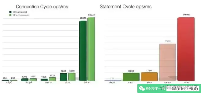 在 GitHub 上有网友贴出了阿里巴巴 Druid 与 hikari 的对比,认为 hikari 在性能上是完全秒杀阿里巴巴的 Druid 连接池的。对此,阿里的工程师也做了一定的回应,说 Druid 的性能稍微差点是锁机制的不同,并且 Druid 提供了更丰富的功能,两者的侧重点不一样。