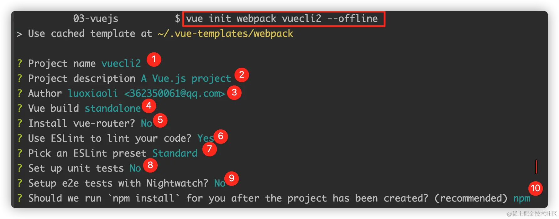 10. Should we run npm install for you: 使用什么命令. 有三种选择