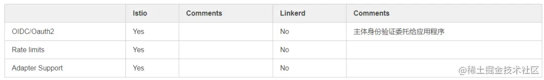 为了突出其他策略类型,Istio也可适用于rating和limiting以及提供对主体身份验证的开箱即用支持。Linkerd用户依赖集群ingress控制器提供rating和limiting。