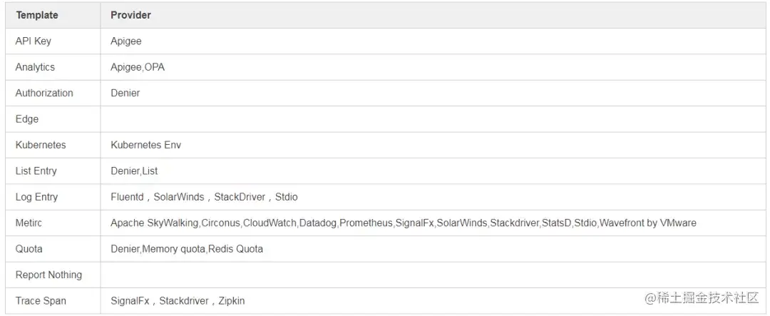 该项目构建了一个可扩展的策略管理机制,允许其他技术可从多个方面与Istio集成,请参阅下面的“template”列表以及一些集成的提供者。你可以认为“template”是一种集成。