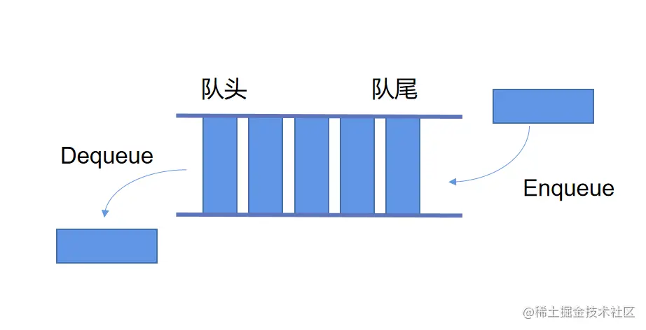 队列(queue),是一种先进先出(FIFO, First-In-First-Out)的线性表。队列只允许在后端插入(Enqueue)操作,在前端进行删除操作(Dequeue)。
