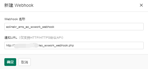 (6)填写 回调地址。通知URL填写内容:私有云访问地址、服务器ip 加上 脚本名(eo_wxwork_webhook.php)