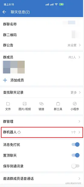 (1)在企业微信移动端,【获取 企业微信机器人-WebHook地址】