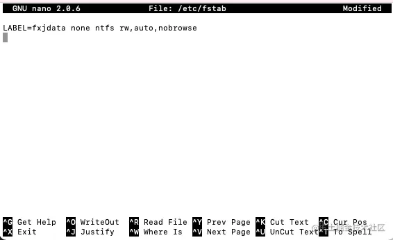 $ LABEL=fxjdata none ntfs rw,auto,nobrowse