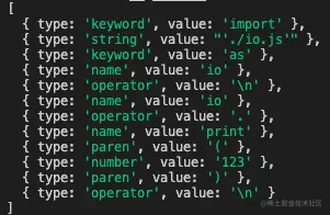 然后有一些是字面量: ['./io.js', 123] (其实有考虑这里要不要把引号作为标示符去解析, 为了简单还是先作为整体吧