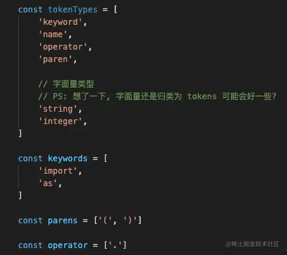 // PS: 想了一下, 字面量还是归类为 tokens 可能会好一些?
