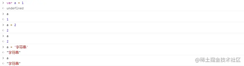 var a = 1 // 过时、不好用let a = 1 // 新的,更合理const a = 1 // 声明时必须赋值,且不能更改