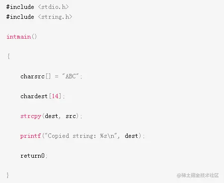 strcpy()的问题: strcpy()函数未指定目标数组的大小,因此缓冲区溢出经常有风险。使用strcpy()函数将较大的字符数组复制到较小的字符数组是很危险的,但是如果字符串适合,那么就不值得冒险了。如果目标字符串的大小不足以存储源字符串,则未指定或未定义strcpy()的行为。