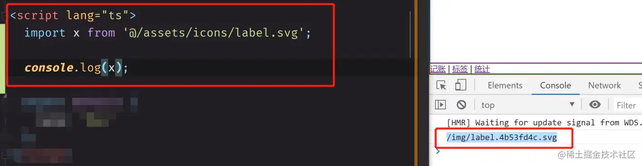 声明了这个类型之后,我们把它log 出来,发现是个字符串,而我们需要的是一个 svg. use的一个使用方法,我们就需要这个 loader