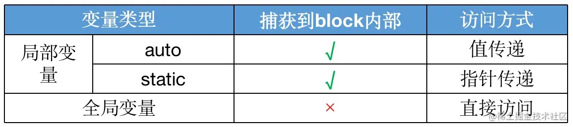 auto修饰的,表示自动变量,离开作用域就销毁。block的捕获该变量是值传递 - 局部变量被