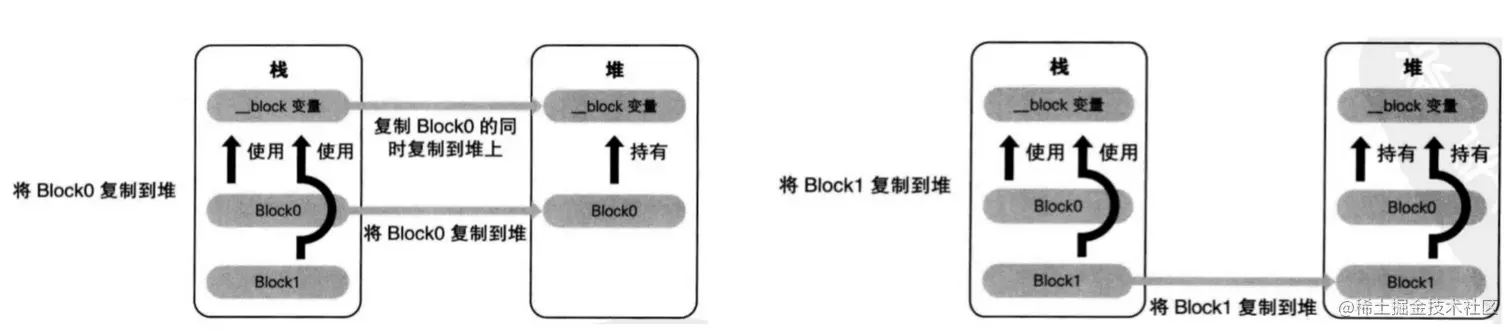 block一旦没有进行copy操作,就不会在堆上。放到堆上的目的是方便我们来控制他的生命周期,可以更有效的进行内存管理。