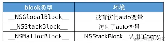 block有3种类型,可以通过调用class方法或者isa指针查看具体类型,最终都是继承自NSBlock类型__NSGlobalBlock__ ( _NSConcreteGlobalBlock )__NSStackBlock__ ( _NSConcreteStackBlock )__NSMallocBlock__ ( _NSConcreteMallocBlock)