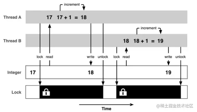 解决方案是使用线程同步技术(同步,就是协同步调,按预定的先后次序进行,常见的方案就是加锁