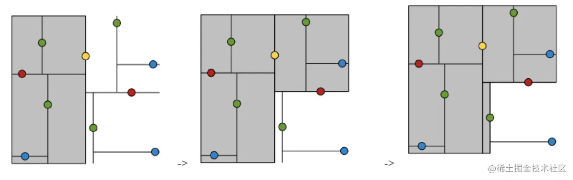 黄色节点就是Root节点,下一层是红色,再下一层是绿色,再下一层是蓝色。