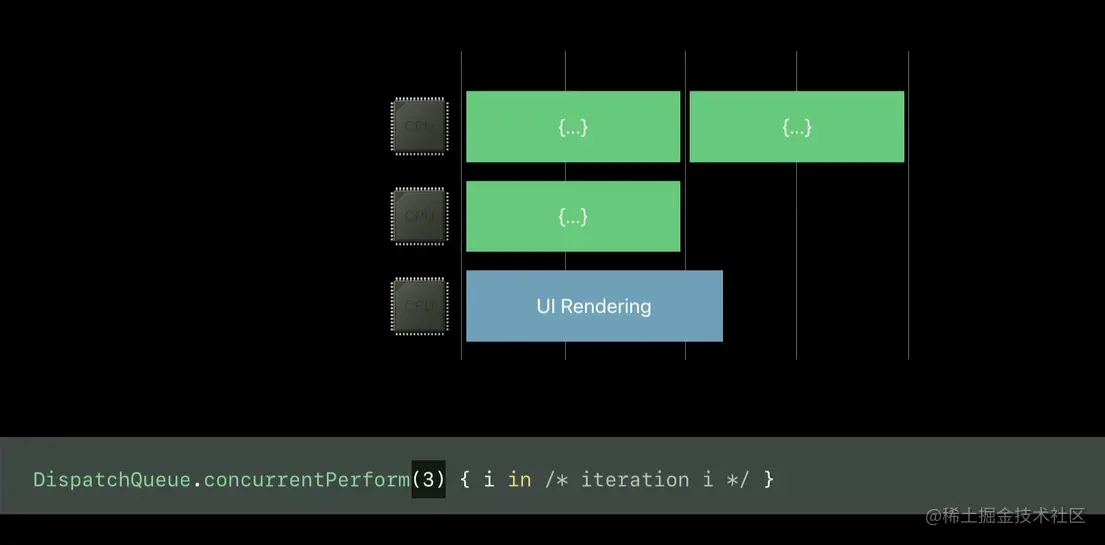 DispatchQueue.concurrentPerform 和 Swift 3.0 之前的 dispatch_apply(DISPATCH_APPLY_AUTO, 1000, ^(size_t i){ /* iteration i */ }) 是一样的,