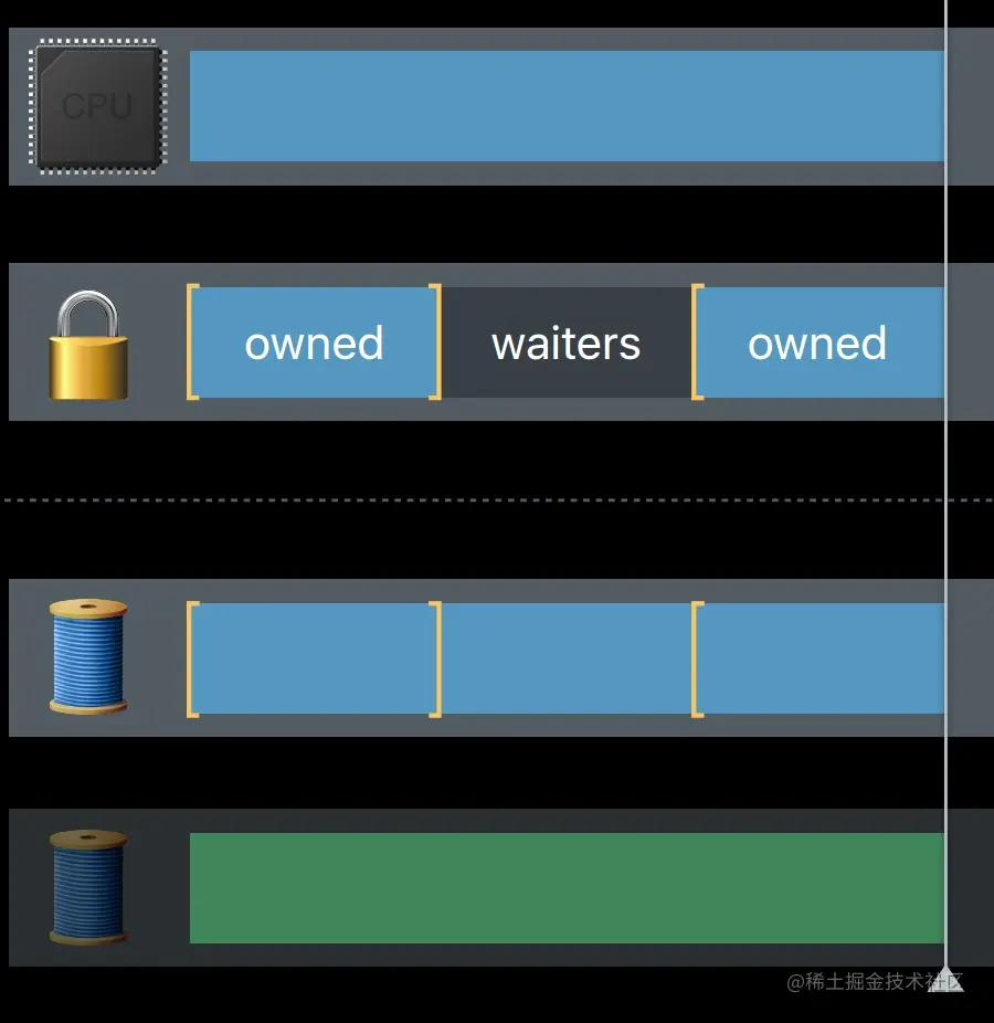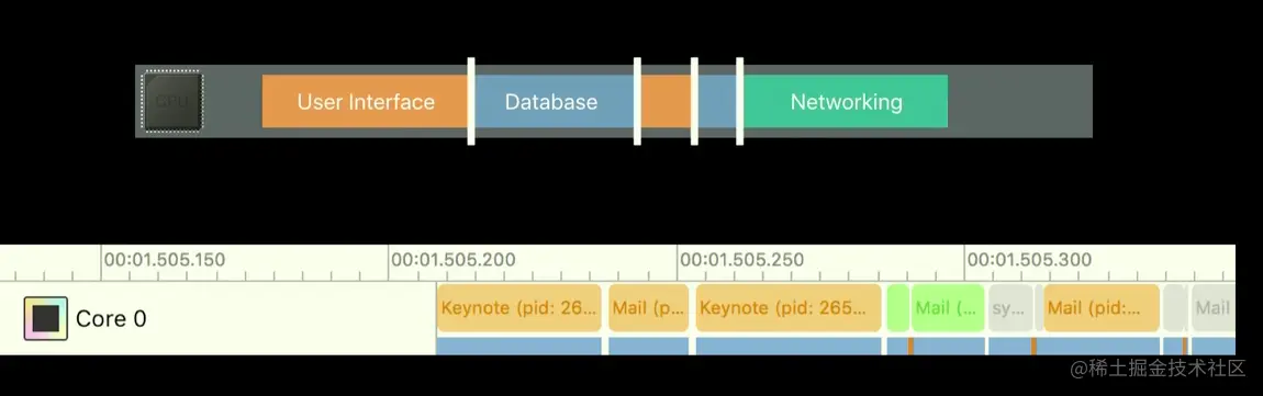 我们看看对于CPU来说 是什么样的 上边的这些白线 显示的是子系统之间的内容切换