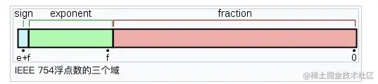 二进制浮点数是以 有符号数值表示法(0 表示一个正数 1表示一个负数) 的储存格式,即最高位被指定为符号位(sign bit),"指数部分" 即次高位 有效的 e 个比特 存储指数,最后剩下的 f 个低有效的比特,存储"有效数"的小数部分(即上边科学计数法表示的分数值,在非规约形式下整数默认为0,其他情况下默认为1)
