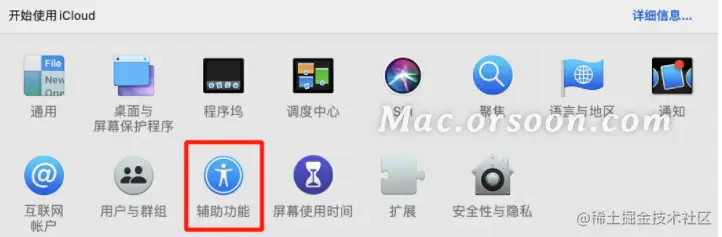 2.在系统偏好设置页面,打开【辅助功能】选项,如下图所示。