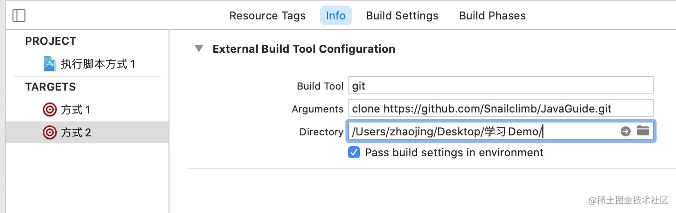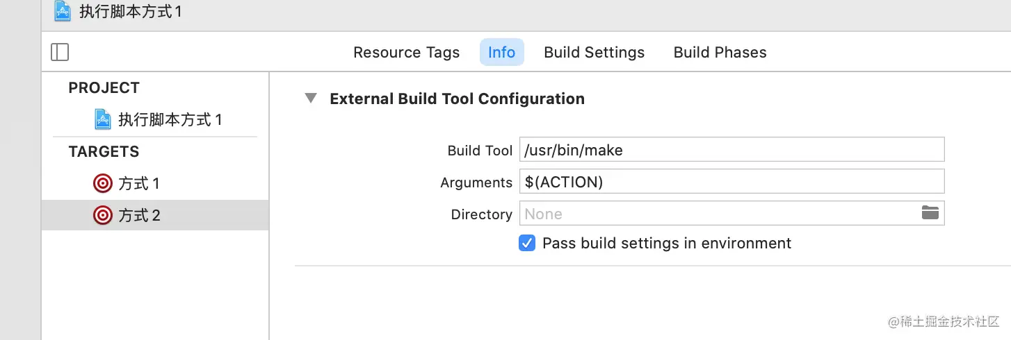 - Arguments:执行的方式,也就是我们xcode中Product下面的的run、clean、Archive等操作