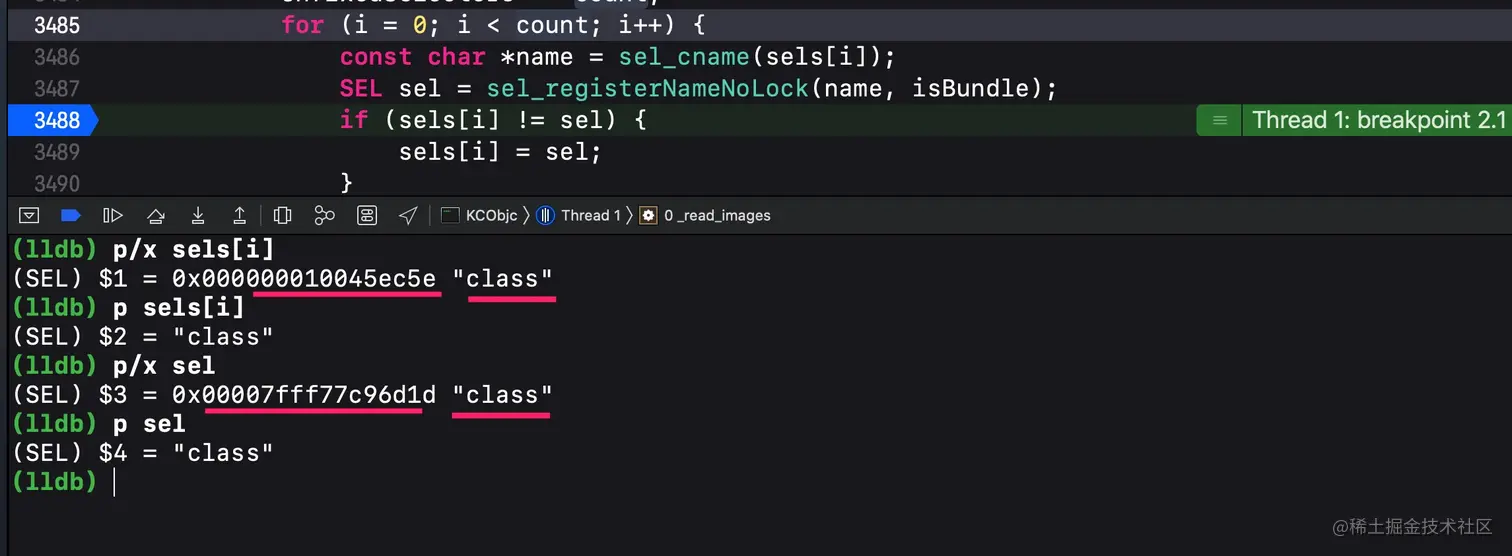 if (sels[i] != sel) {//当sel与sels[i]地址不一致时,需要调整为一致的