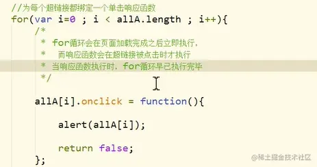 在这段代码中 页面加载时 先加载for循环 循环三遍停止循环 在点击超链接时才执行响应函数